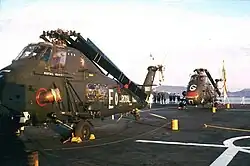 While the Wessex proved to be too large to reasonably operate from most of the RAN's destroyers, it was found to be well suited as a troop-transport helicopter from heavy landing ships and larger vessels.[37] By 1980, the Wessex was no longer being used for anti-submarine operations, having been replaced by the more advanced and capable Westland Sea King in this capacity. Instead, remaining Wessex helicopters were retained to perform its secondary roles as a plane guard, search and rescue platform, and as a utility transport helicopter.[35][38] The type was withdrawn from service in 1989.[39]