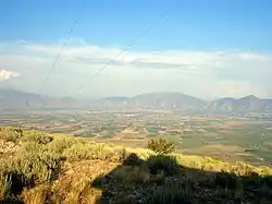 A panoramic view of Utah County between Orem and Provo in the north (left) and the radio towers on West Mountain to the South (right)