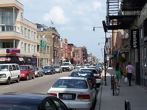 Polish immigration into the area accelerated during and after World War II when as many as 150,000 Poles are estimated to have arrived between 1939 and 1959 as Displaced Persons (DPs).[16] Like the Ukrainians in neighboring Ukrainian Village, they clustered in established ethnic enclaves like this one that offered shops, restaurants, and banks where people spoke their language. Division Street was referred to as Polish Broadway.[16] Poet John Guzlowski whose parents first came to the area as DPs commented on growing up in the area in the 1950s that "it felt like everyone was a Pole", a place where the local store owners, priests, cops, trash men, teachers, librarians all either spoke Polish or had family that did.[17]