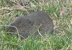 In southeastern Montana, western meadow voles were the second-most abundant small mammal (after deer mice, Peromyscus maniculatus) in riparian areas within big sagebrush (Artemisia tridentata)-buffalo grass (Bouteloua dactyloides) habitats.[5] Western meadow voles are listed as riparian-dependent vertebrates in the Snake River drainage of Wyoming. In a compilation of 11 studies[6] on small mammals, western meadow voles were reported in only three of 29 sites in subalpine forests of the central Rocky Mountains. Their range extensions were likely to be related to irrigation practices.[7] They are now common in hayfields, pastures, and along ditches in the Rocky Mountain states.[8] In Pipestone National Monument, Minnesota, western meadow voles were present in riparian shrublands, tallgrass prairie, and other habitats.[9]