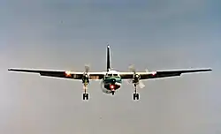 F27 of Air New Zealand about to arrive in Westport in 1979.