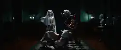 - ^ The black liquid Irving hallucinates inside the office in preceding episodes is revealed to be the paint his Outie uses. Furthermore, the score in those scenes is a variation on the main guitar riff from "Ace of Spades".[1]