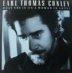 "What She Is (Is a Woman in Love)" is a song written by Bob McDill and Paul Harrison and recorded by American country music artist Earl Thomas Conley. It was released in February 1988 as the lead single from the album The Heart of It All. The song Conley's fifteenth number one on the country chart. The single went to number one for one week and spent a total of thirteen weeks on the country chart.[1]