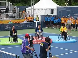 The original competition was proposed to be held at Rexall Centre, consistent with the Games' venue plan in hosting Paralympic sport at the same venue as their Olympic counterpart. However, the Parapan American Games schedule conflicted with 2015 Rogers Cup's women competition[2] and the wheelchair tennis competition was forced to relocate. As a result, the University of Toronto Scarborough Tennis Centre was constructed for the wheelchair tennis competition.[3]