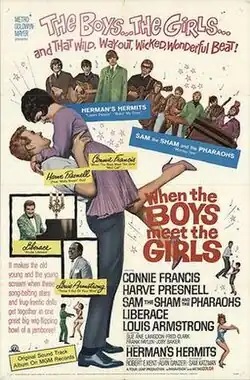 When the Boys Meet the Girls is a 1965 American musical film directed by Alvin Ganzer and starring Connie Francis and Harve Presnell based on the musical Girl Crazy and a remake of MGM's 1943 film Girl Crazy.