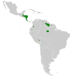 The white-chinned swift is widely but very patchily distributed. It has been confirmed to nest only in Costa Rica and at one location in northern Brazil. There are sight records in Mexico and very few confirmed records in Belize, Guatemala, Honduras, Nicaragua, and Panama. There are somewhat more records in Colombia, Ecuador, Guyana, Peru, Suriname, and Venezuela. It has occurred as a vagrant in French Guiana and there is at least one sight record in Bolivia.[7][4][5]