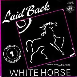 "White Horse" is a song written and performed by Tim Stahl and John Guldberg of the Danish duo Laid Back. It was released as the B-side of their single "Sunshine Reggae" which became a major hit in several European countries. In the US, the A-side was mainly ignored and it was the B-side that became most successful. It was released as a single and went on to spend three weeks at number one on the Dance Charts.[4] The single also made the top five on the R&B singles chart and peaked at number 26 on the Billboard Hot 100. Although being played in European clubs, it failed to chart there when re-released as an A-side.