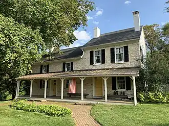 The building consists of two sections. The original section dates to circa 1720,[2] and is a two-story, stuccoed stone structure. The western section was added circa 1790. Located at mile marker 24 on the Old Lancaster Road, it was an overnight stop on the first stage from Philadelphia to Lancaster. Thomas Jefferson stayed at the tavern on September 4, 1776.[3] It was also an important stop for Washington's messenger from Valley Forge to Lancaster, when the latter served as the temporary U.S. capital.[4]