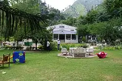 The White Palace of Marghazar was built in 1940 by the first king of Swat, Miangul Abdul Wadud (Badshah Sahib) in the small town of Marghazar situated at about 13 kilometers away from Saidu Sharif. The name was given to the palace as it was built of white marble. The name has been changed 3 times first it was named Swati Palace and then Motti Palace and then White Palace. The palace now serves as a hotel. The White Palace at Marghazar was the summer residence of the Wali of Swat, Miangul Jehanzeb. Located at 7,136 feet above sea level on Marghazar Hill, it was later converted into a tourist resort.[1][2]