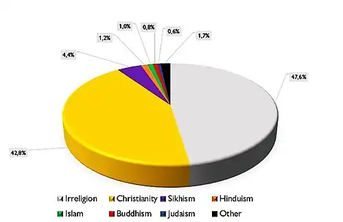 - Irreligion (9,855 persons or 47.6%)