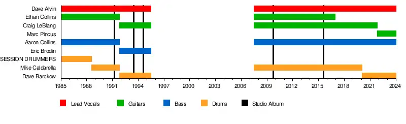 • Dave "D-Bone" Alvin – vocals, harmonica (1985–1995, 2007–2021)