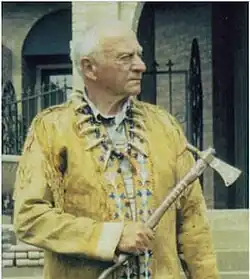 Wilbur Ternyik was a descendant of Clatsop leader Chief Coboway,[9][10] who met the Lewis and Clark expedition in 1804 when they arrived at the Pacific Coast near Astoria, Oregon.[2] His father was a Hungarian immigrant. His father moved back to the east coast prior to Ternyik's birth, and his mother suffered from alcoholism; he was mostly raised by his grandparents.[6] Ternyik was born in Astoria[11] and grew up in Warrenton, Oregon, graduating from Warrenton High School.[12] He often wore a tan buckskin jacket and used what he called his "tomahawk peace pipe" as a gavel in meetings.[11][13][14]