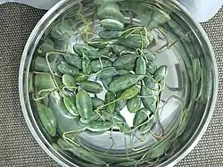 | Capparis spinosa | Caper-bush | (Arabic: qabbār, el-aṣaf laṣaf) Caper flower buds (before they begin to blossom) and fruits (cucumber-like berries) are pickled and eaten. Caper leaves are part of the Greek cuisine[48] In Israel and Palestine, caper buds and berries were often pickled in a brine of salt water and spices, while the caper leaves were used as a spice.[41] The tender green branches and leaves can also be pickled and eaten.[49] |