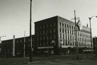 The William A. Paterson Factory Complex consisted of four major buildings occupying approximately one-third of a city block. The oldest building was a single-story brick-and-wood shed, probably built in the late 1870s or early 1880s. The next two were a three-story brick building constructed between 1885 and 1887, and a second three-story, L-shaped building constructed between 1895 and 1897. The facades of these two buildings had balanced window placements between heavy brick piers. The fourth building was constructed in 1905, at the time Paterson transited from manufacturing carts and buggies to manufacturing automobiles. This building was a five-story structure clad with paving brick. It had a balanced window placement and a stepped brick cornice-line.[3]