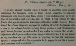 Adam lost interest in the Baptist Mission, but not India, and with Roy and a mix of locals and Europeans formed the Calcutta Unitarian Society. The society ended in an unusual way when the Hindu membership became interested in the emerging ideas of Brahmo Somaj. In 1830, Adams was appointed by the colonial government of Bengal to carry out a census and analysis of native education in Bengal.[2]
