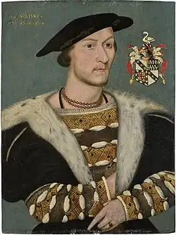 William Carey (c. 1495 – 22 June 1528)[3] was a courtier and favourite of King Henry VIII of England. He served the king as a Gentleman of the Privy chamber, and Esquire of the Body to the King. His wife, Mary Boleyn, is known to history as a mistress of King Henry VIII and the sister of Henry's second wife, Anne Boleyn.