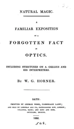 Frontpage of Horner's 1832 pamphlet on optics