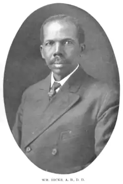 William Hicks (April 9, 1869 – July 18, 1954) was an American Baptist pastor, academic administrator, writer, and educator.[1] He authored the book, History of Louisiana Negro Baptists from 1804 to 1914 published in 1915.[2] Hicks was the founding principal of the Thirteenth District Normal and Collegiate Institute, an early school for African American students in Shreveport, Louisiana.