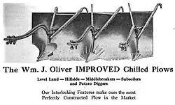 Ad for the William J. Oliver Chilled Plow; Oliver's uncle, James Oliver, invented the chilled plow