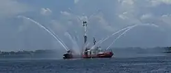 Built in Owen Sound, Ontario by Russel Brothers Limited with a modified Tugboat hull.[2] William Lyon Mackenzie operates 12 months a year, providing emergency services within Toronto Harbour and the adjacent waters of Lake Ontario. The boat is mainly docked at 339 Queen's Quay West next to Fire Station #334. It is the main fireboat for Toronto Fire Services as well as an icebreaker for the City of Toronto. William Lyon Mackenzie is one of a few fireboats to ply the Great Lakes, Edward M. Cotter is operated by Buffalo Fire Department and operates in Lake Erie. William Lyon Mackenzie does duty during the Canadian International Air Show, using its spray to make a very visible visual point of reference at the centre of the display area.