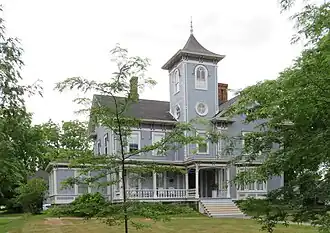 The Stafford House is a two-story Italianate structure with a three-story central cupola. The house has decorative cornices and architrave trim surrounding the double-hung sash windows. The front facade has a long porch running across and a bay window. The interior contains spacious rooms, including a parlor on the first floor and a child's room on the second.[2]