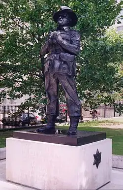 A statue of Slim on Whitehall, outside the Ministry of Defence, was unveiled by Queen Elizabeth II in 1990. Designed by Ivor Roberts-Jones, the statue is one of three British Second World War military leaders (the others being Alan Brooke and Bernard Montgomery).[103]
