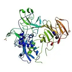 8. ^ a b Evans BR, Mosig RA, Lobl M, Martignetti CR, Camacho C, Grum-Tokars V, Glucksman MJ, Martignetti JA (September 2012). "Mutation of membrane type-1 metalloproteinase, MT1-MMP, causes the multicentric osteolysis and arthritis disease Winchester syndrome". Am J Hum Genet. 91 (3): 572–6. doi:10.1016/j.ajhg.2012.07.022. PMC 3512002. PMID 22922033.