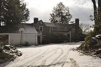 Windmill Hill is located in a rural setting of southeastern Dublin, on the south side of Windmill Hill Road. It sits on about 4 acres (1.6 ha) of land, which slope steeply away from the road to the southeast, providing views of Mount Monadnock and the hills of Peterborough. It is a 1+12-story wood-frame structure built in a U shape with gabled roofs and shingled exterior. A rubblestone terrace wall provides a level grassy area behind the house. Its windows are six-over-six sash throughout, and there are gabled dormers piercing the roof of the central section.[2]