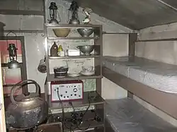 Normal occupancy of Wordie House in its early years was four to five people. Cans of coffee and other goods, records, tools, paint cans, plates, pots, pans, books, typewriters, radio equipment, and other items still remain in the hut, making it a fascinating time capsule of life in one of the first scientific stations established in Antarctica.[4]