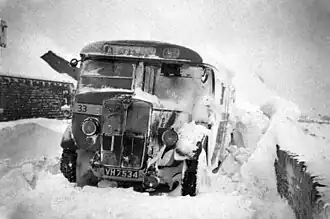 ![]() Snowbound bus, Castle Hill, Huddersfield. | |