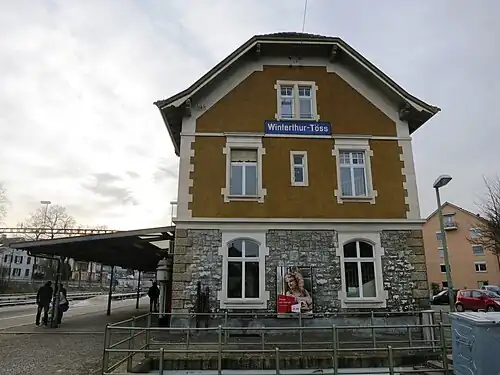 Winterthur Töss railway station is a railway station in the city of Winterthur in the Swiss canton of Zurich. It takes its name from that city's quarter of Töss where it is located.[2] The station is situated on the Winterthur to Koblenz via Bülach line.[3]