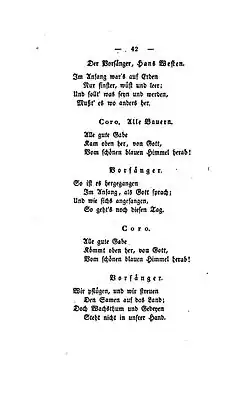 - ^ Marti, Andreas. "Wir pflügen und wir streuen (Alle gute Gabe)". evangeliums.net (in German). Retrieved 5 January 2019.