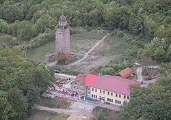 In 1930, a restaurant was established adjacent to the tower. The first restaurant built in block design, however, was destroyed in 1933, probably due to arson. It was replaced the same year by a solid building. The tower has later been extensively renovated several times. Further new structures including a private brewery and a hall have also been added.