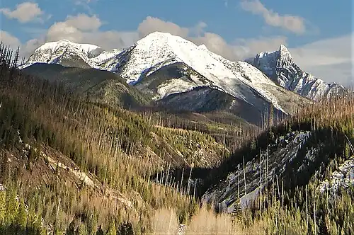 ![]() Wolftail Mountain centered, west aspect. (Peril Peak left, Mt. Doody right) | |