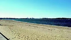 Wollaston Beach, with the Boston skyline in the background, in April 2009