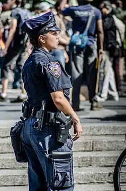 Women began working as police officers in the United States as early as the 1890s. Women made up 12.6% of all U.S. sworn police officers in 2018.[1] Employed largely as prison matrons in the 19th century, women took on more and increasingly diverse roles in the latter half of the 20th century. They face a particular set of challenges given the history of their entry into the profession, their low rates of participation, and the complex identities they negotiate in the work place. Women who work in law enforcement have struggled for years to gain acceptance in their workplace. Some of their biggest challenges are their lack of representation, stereotypes around women, and intersectionality. Despite these challenges, women have proven to be more calm and use less force. Women go into situations more level-headed than males, and are able to deescalate situations better.[2]