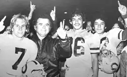 Cuccia's own son, Ron Cuccia, was the team's quarterback from 1975–77, during which time he set city and state records for passing, accounted for 145 touchdowns, and set a national record for total offense with 11,451 yards. That included 8,804 yards and 91 touchdowns for passing alone.[14] During the 1978 championship season Steve Clarkson was the quarterback. All star receiver Eddie Martinez graduated in 1978, played Division I football in college. Martinez later returned to Wilson as a teacher, coaching the Mules from 1993-2017 and compiling a record of 176-149-0.[15]