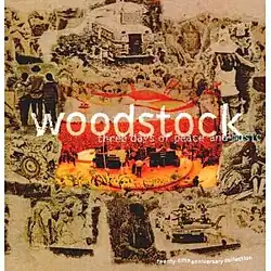 Woodstock: Three Days of Peace and Music is a 4-CD live box-set album of the 1969 Woodstock Festival in Bethel, New York.[1] Its release marked the 25th anniversary of the festival. The box set contains tracks from Woodstock: Music from the Original Soundtrack and More, Woodstock 2, and numerous additional, previously unreleased performances from the festival as well as the stage announcements and crowd noises. Just prior to the box set's release, Atlantic Records released a much shorter 1-CD version entitled The Best of Woodstock. In 2019, Rhino Records issued a 38-CD box set called Woodstock – Back to the Garden: The Definitive 50th Anniversary Archive which includes every musical performance as well as stage announcements and other ancillary material.