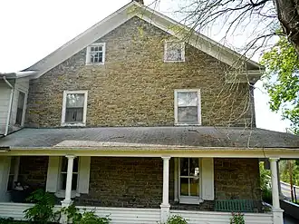 Built in 1814, this historic structure is a two-and-one-half-story, five-bay, stone building that measures forty-five feet by thirty-five feet. It has a two-story frame extension that was built along the back length of the stone building. The interior has a center hall plan that was created in the Georgian style. The front facade features twin entrances, typical of early tavern construction.[2]