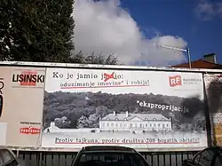 Following this episode, Workers' Front participated in an anticlerical protest in Zagreb,[40] tried to place, but was denied a billboard featuring Ivica Todorić[41] (the richest person in Croatia) and successfully registered for 2015 parliamentary election in three electoral districts.[42]
