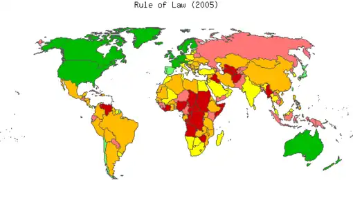 2005 map of Worldwide Governance Indicators, which attempts to measure the extent to which agents have confidence in and abide by the rules of society