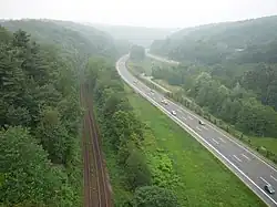 As the eastern tube of Rauenthal Tunnel has been blocked since 2005 for safety reasons, trains only use the western tube. South of the tunnel, Rauenthal station ends in a deep cutting.