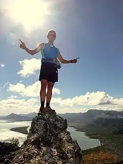 Xavier Thévenard on the summit of Le Morne Brabant, Mauritius, slightly less than two months before winning the UTMB.