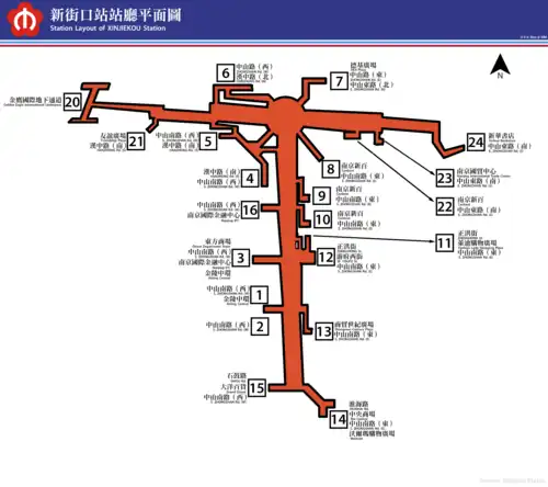 1. ^ 新街口站25个出站口 无障碍出入口就一个 (in Chinese). Jiangsu News. Retrieved 20 December 2016.