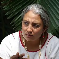 Yésica Sánchez Maya (born 13 November 1977 in Mexico City, Mexico) is a human rights attorney who works in Oaxaca, Mexico. In 2003, she began serving as president of the Mexican League for the Defense of Human Rights (LIMEDDH) in Oaxaca.[1] In 2006, when a teacher's strike erupted in Oaxaca she was threatened for defending clients and an arrest warrant was issued when she spoke out about the violence and human rights abuses the state was engaging in.[2][3] In 2008, she left LIMEDDH and founded the Consortium for Parliamentary Dialogue and Equality, for which she serves as deputy director, and works on a wide variety of issues including economic and politic inequality, femicide, education, and other human rights issues.[4] She has testified at a hearing by the Inter-American Commission on Human Rights about violence against women in the region, sexual minorities, and indigenous women, including the Mixe[5] and has attended hearings and presented reports to both the United Nations and the Organization of American States regarding forced disappearances, torture, and violence against women. In 2011, Sánchez Maya and other human rights activists were able to pressure Oaxacan legislators to pass Law for the Defense of Human Rights to limit state intimidation and protect citizen's rights.[6] In 2012, she sought the office of state Ombudsman for the Defence of Human Rights of the People of Oaxaca (DDHPO) and had the support of NGOs and citizens,[7] but the appointment went to Arturo Peimbert. Sánchez Maya has been vocal in criticism of the ombudsman for failure to implement the Victims Act and convene the Committee of Victims.[8] In 2015, Sánchez Maya was advocating for laws to protect journalists and human rights defenders from threats and violence. She stated that this year, the number of incidents has risen markedly.[9]