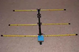 The bandwidth of an antenna is, by one definition, the width of the band of frequencies having a gain within 3 dB (one-half the power) of its maximum gain. The Yagi–Uda array in its basic form has a narrow bandwidth, 2–3 percent of the centre frequency.[4] There is a tradeoff between gain and bandwidth, with the bandwidth narrowing as more elements are used.[4] For applications that require wider bandwidths, such as terrestrial television, Yagi–Uda antennas commonly feature trigonal reflectors, and larger diameter conductors, in order to cover the relevant portions of the VHF and UHF bands.[12] Wider bandwidth can also be achieved by the use of "traps", as described below.