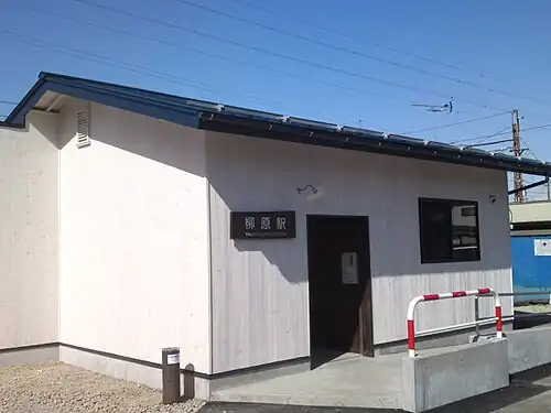 Yanagihara Station is a station on the Nagano Electric Railway Nagano Line and is 8.0 kilometers from the terminus of the line at Nagano Station, and approximately 23 km from its opposite terminus at Yudanaka Station. From Nagano, soon after departing Yanagihara, the train crosses the Murayama Bridge over the Chikuma River before arriving at Murayama Station in Suzaka, Nagano.
