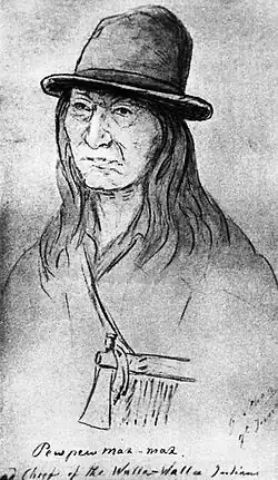 Piupiumaksmaks (alternatively spelled Peo-peo-mox-mox or Peopeomoxmox; c. 1800 – 1855) was head chief of the Walla Walla tribe and son to the preceding chief Tumatapum. His name meant Yellow Bird, but it was often mistranslated as Yellow Serpent by Europeans.