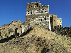 After the Roman expedition (perhaps earlier) the country fell into chaos, and two clans, namely Hamdan and Himyar, claimed kingship, assuming the title King of Sheba and Dhu Raydan.[59] Dhu Raydan, i.e., Himyarites, allied themselves with Aksum in Ethiopia against the Sabaeans.[60] The chief of Bakil and king of Saba and Dhu Raydan, El Sharih Yahdhib, launched successful campaigns against the Himyarites and Habashat, i.e., Aksum. El Sharih took pride in his campaigns and added the title Yahdhib to his name, which means "suppressor"; he used to kill his enemies by cutting them to pieces.[61] Sana'a came into prominence during his reign, as he built the Ghumdan Palace as his place of residence.