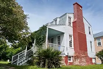 York-Gordon House, more accurately known as the Patrick and Mary Gordon house, is a historic dwelling located at New Bern, Craven County, North Carolina. It was built in 1771, as documented by a letter from Patrick Gordon to William Hooper. Early title research suggested that the house was much older and belonged to Susan York; she evidently lived in an earlier house on this site; her house was probably destroyed in the great storm of 1769. The 1771 house is a 1+1⁄2-story, five-bay, frame dwelling with a gambrel roof and Georgian style design elements. A Federal chimneypiece replaced an earlier Georgian chimneypiece in the early 19 century. The house is sheathed in shiplap siding over brick-filled walls, rests on a brick over ballast stone foundation and features a full-width, one-story shed-roof porch, which was added 1786, based on estate records.[2]